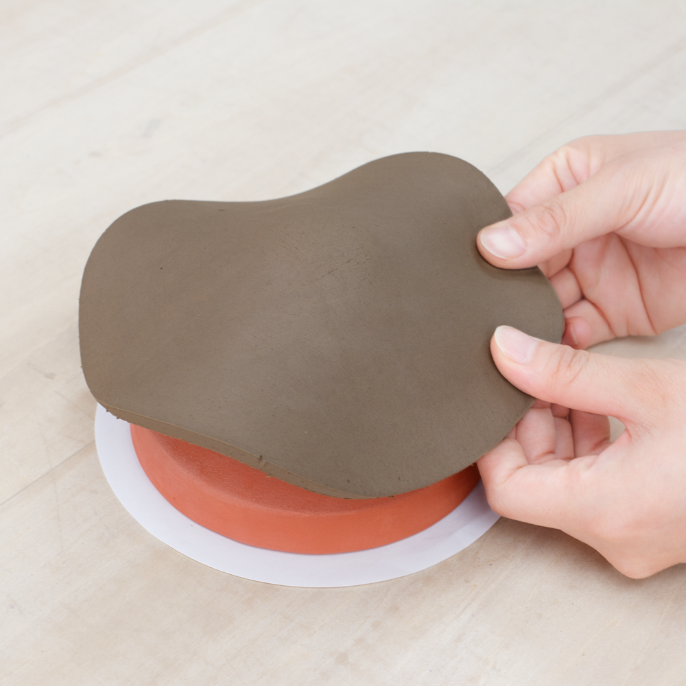 うすく伸ばした土(タタラ)を型に合わせますので、しっかりした形ができます。