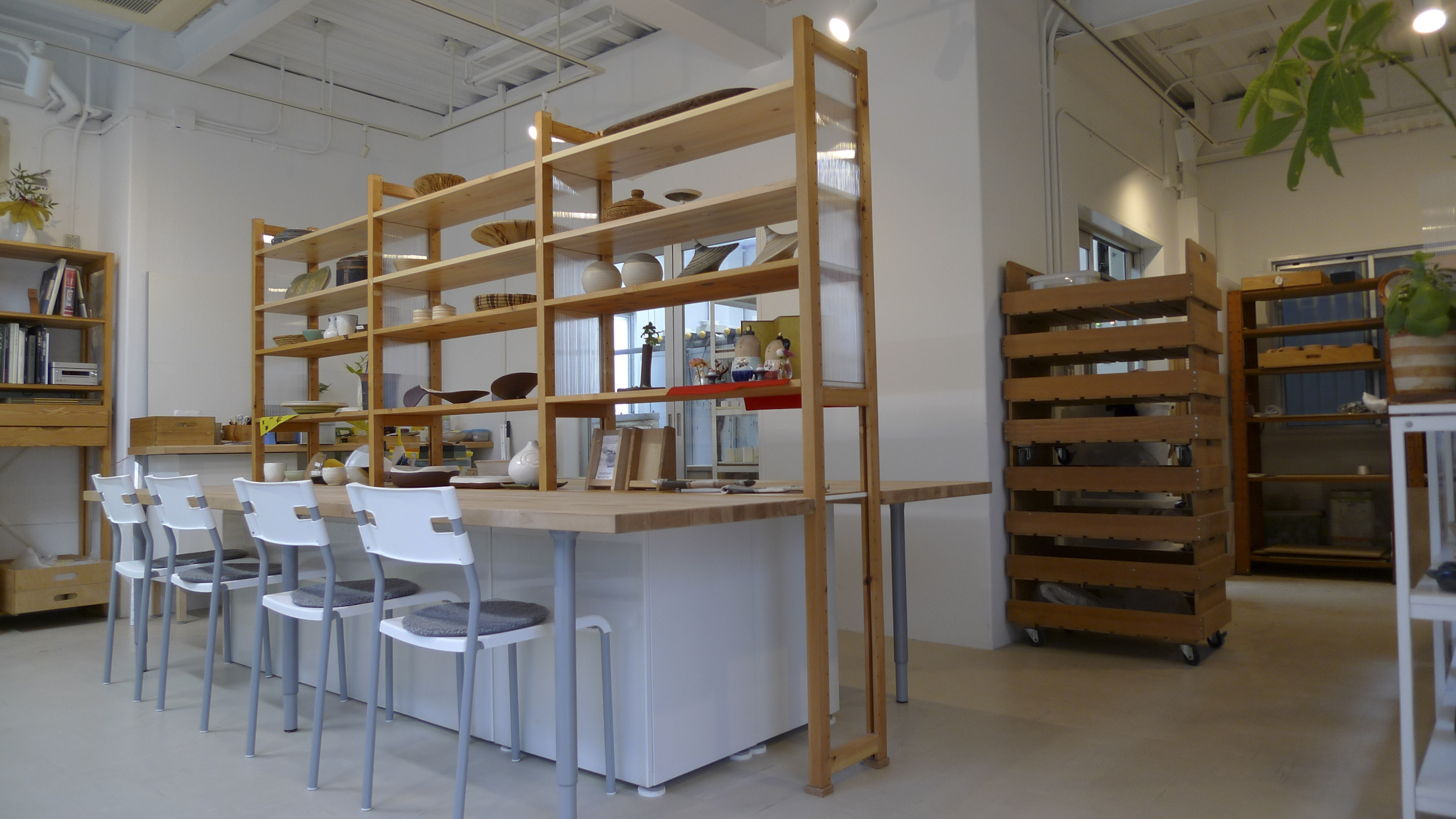 外光が入る明るい教室です。焼成設備は東大阪教室にあるため、すっきりしています。