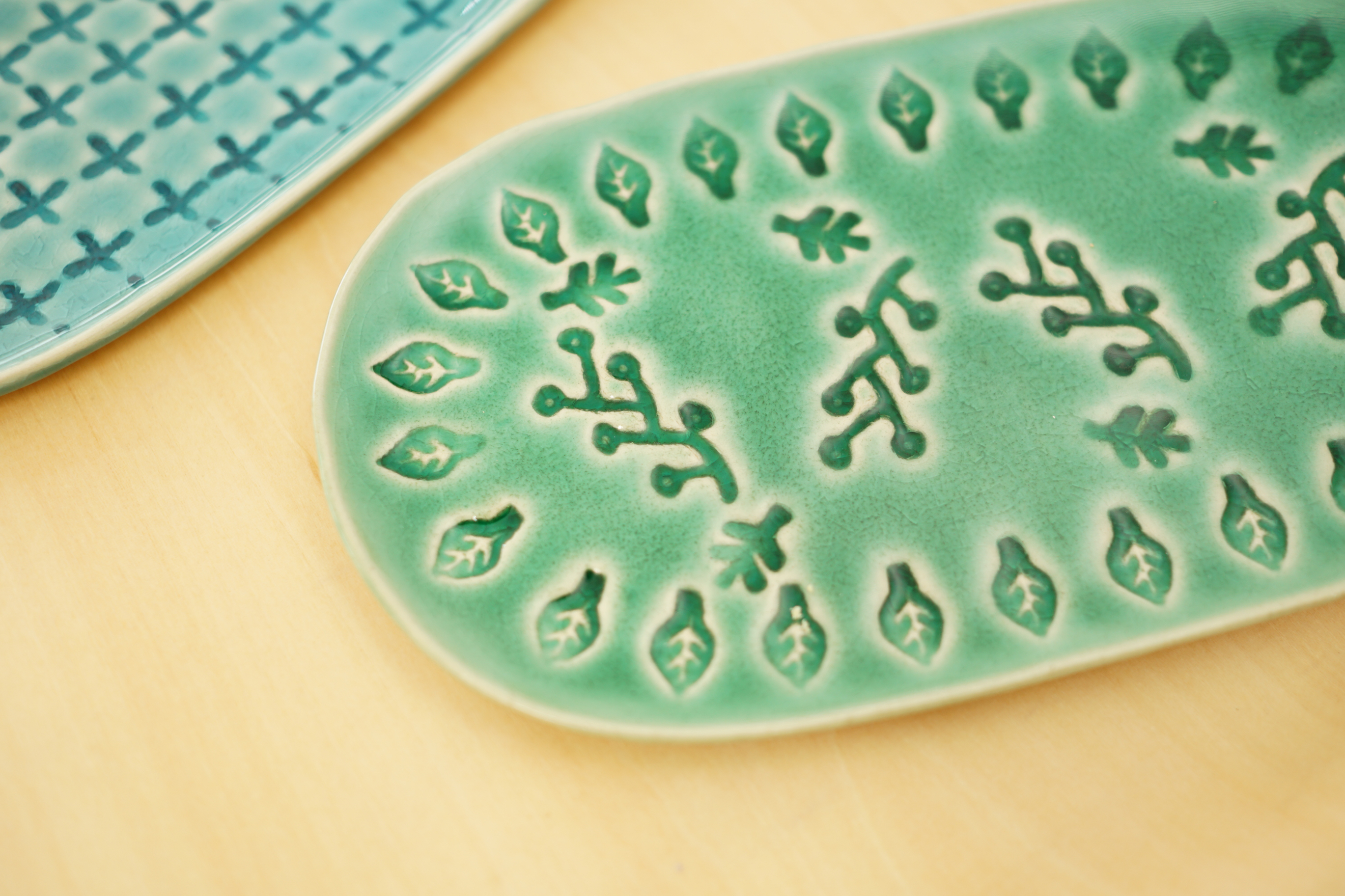 この微妙なフチの上がり加減は型にのせて作り上げます。見落としがちですが、フチまわりが薄めで引き締まった雰囲気のお皿になります。