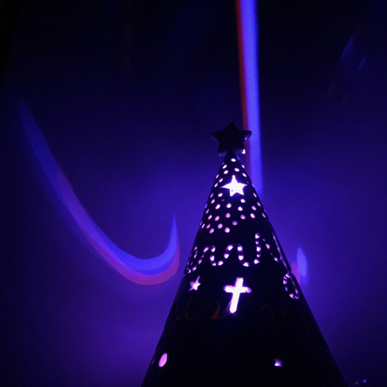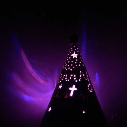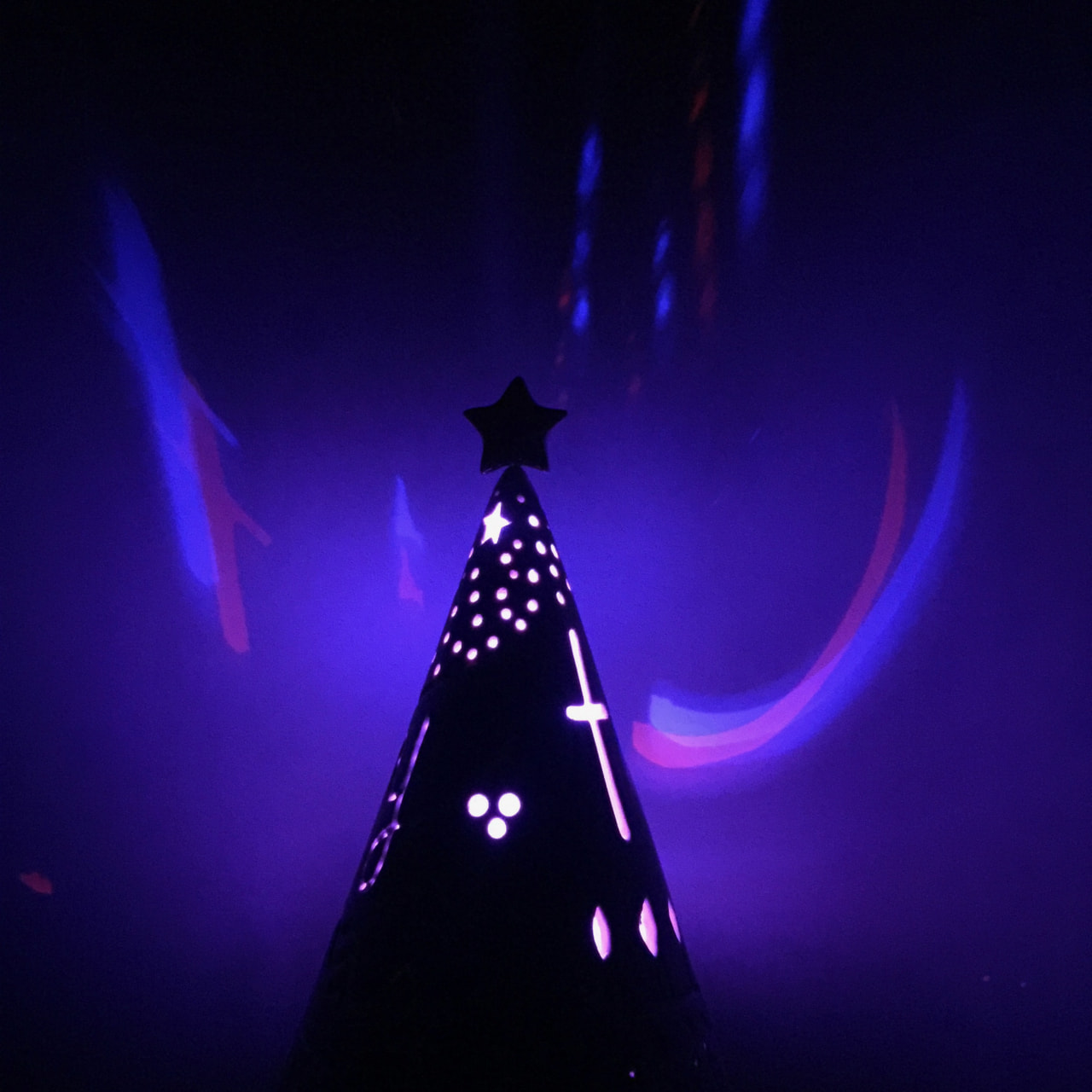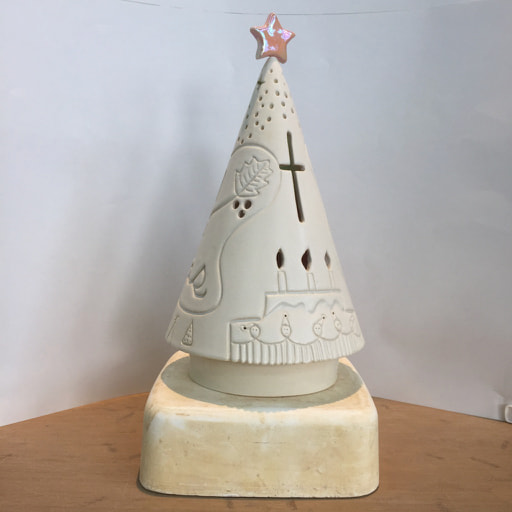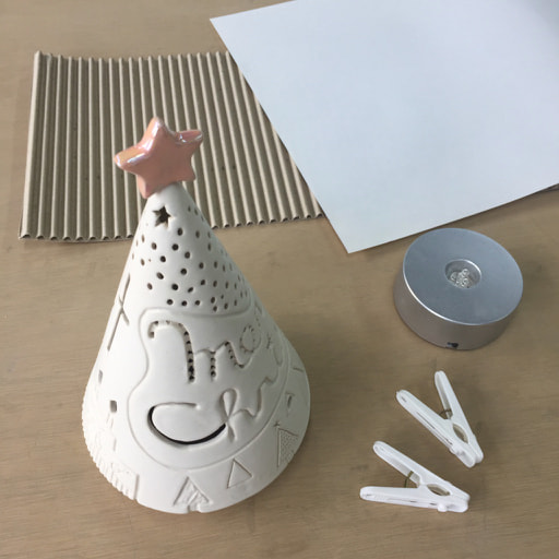 台の上にLEDライトを置き、ツリーをかぶせて置きます。