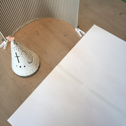 少し高くした方がテーブルが入らないのでいい感じに撮れます。10cmほどの直径で、高さ3〜5cmほどあれば良いです。