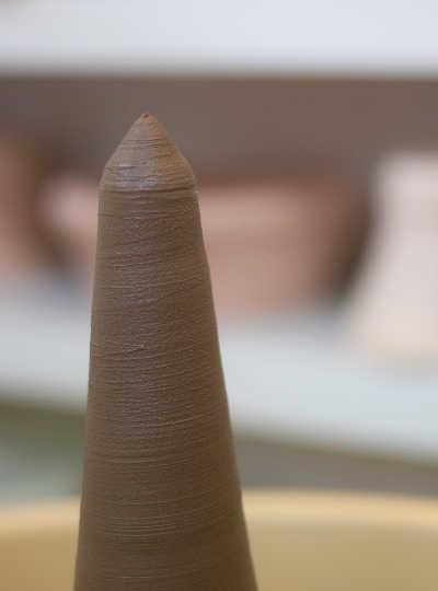 回転するロクロ上で芯がぶれないように常に心がけて挽きます。