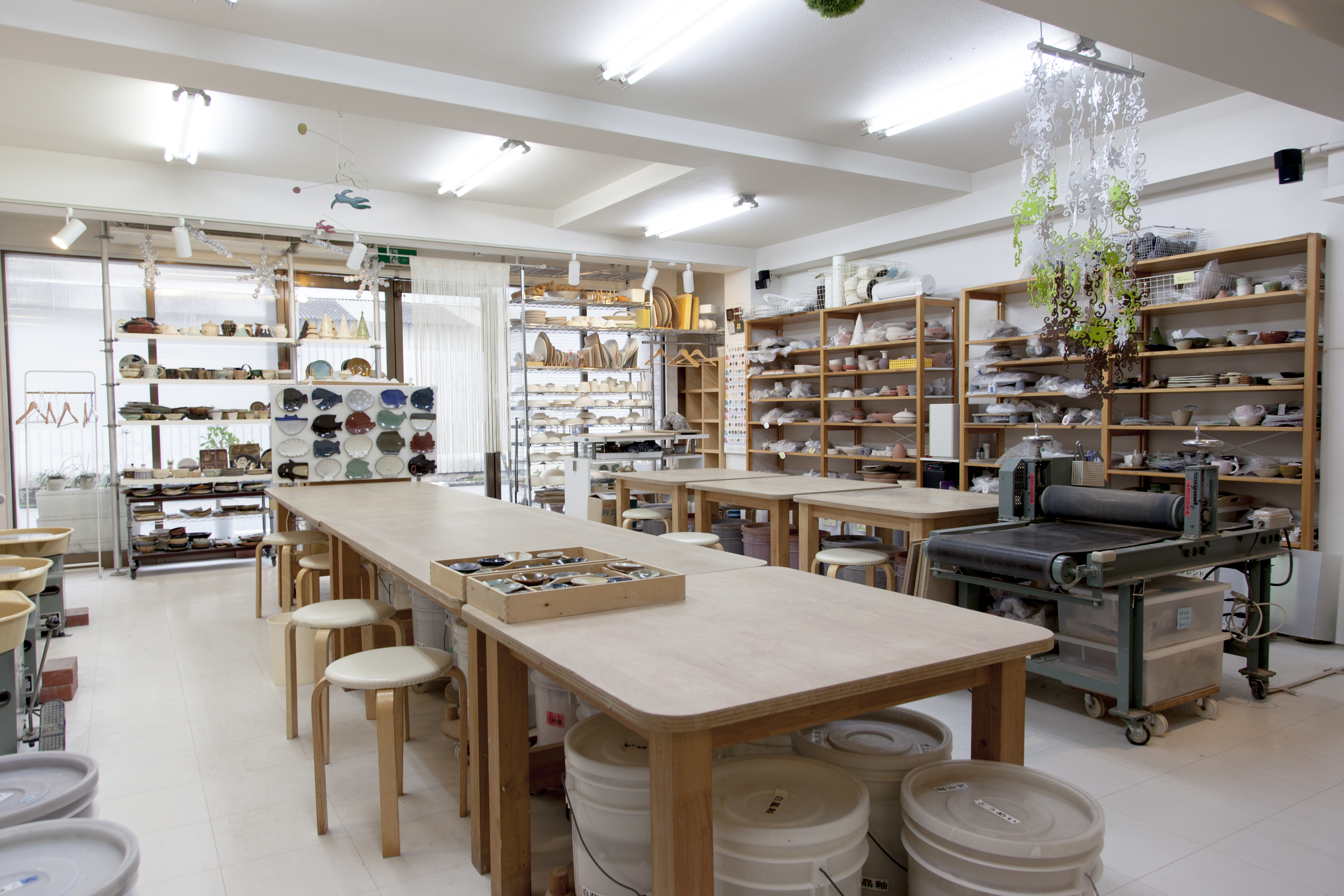 外光が入る明るい教室です。焼成設備は東大阪教室にあるため、すっきりしています。